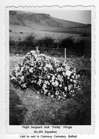 Flight Sergeant Jack ' Paddy ' Pringle's body was taken back to Ireland to be laid to rest in the ' Carmony Cemetery Belfast ' in Section - AL Grave - 36.